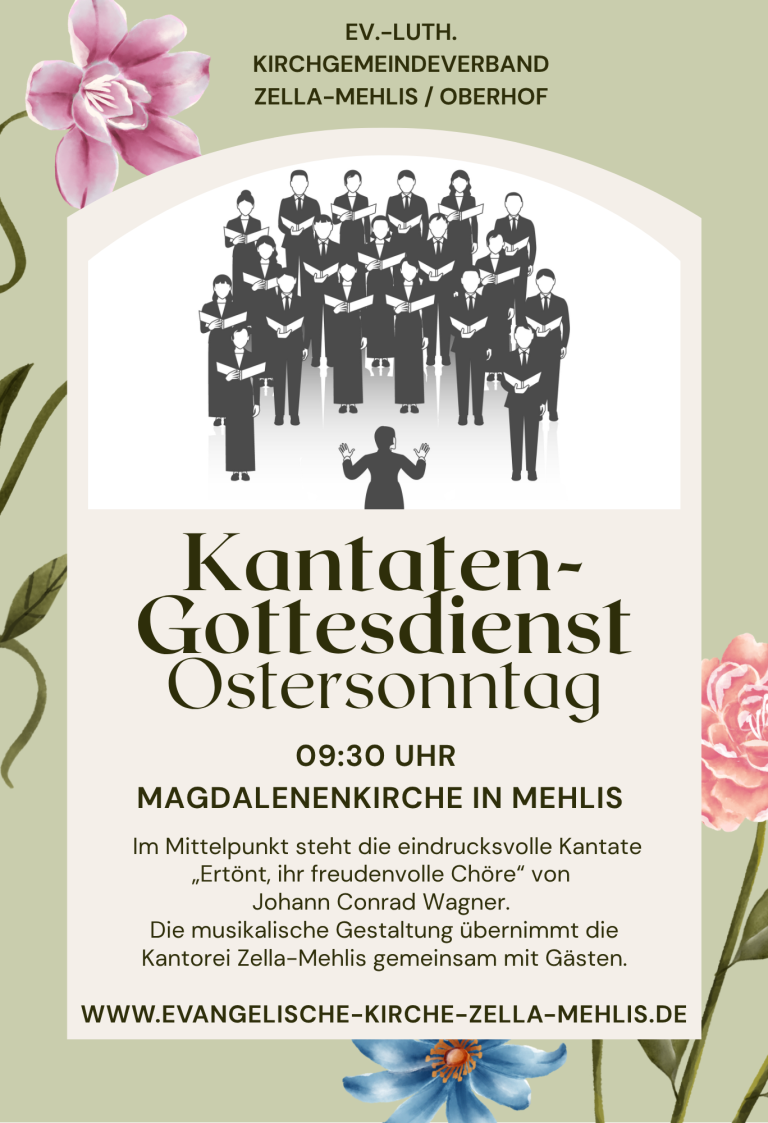 Im Mittelpunkt unseres Kantatengottesdienstes am Ostersonntag, den 05.04.2026, in der Magdalenenkirche steht die eindrucksvolle Kantate „Ertönt, ihr freudenvolle Chöre“ von Johann Conrad. Diese festliche Musik lädt uns ein, den Auferstehungsglauben zu feiern und die Freude des Ostermorgens zu erleben. Zudem wird im Rahmen des Gottesdienstes eine Taufe stattfinden, die diesem besonderen Tag eine zusätzliche Dimension der Freude verleiht. Wir heißen alle herzlich willkommen, gemeinsam in der Atmosphäre der Hoffnung und des Glaubens zu musizieren und zu beten.